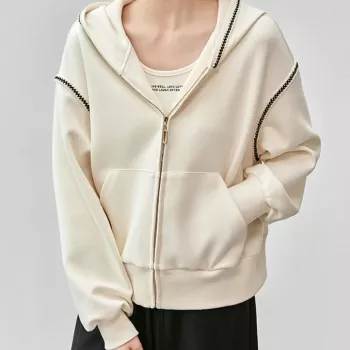 Women’s Black Zip Hoodie Cardigan – Striped Streetwear Jacket for Spring