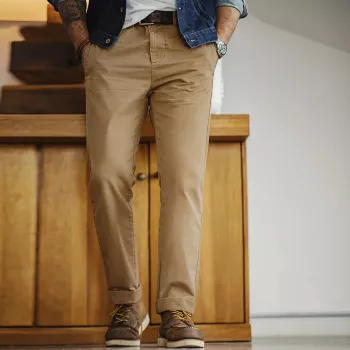 Men’s Heavyweight Twill Cotton Khaki Workwear Pants – Casual Fit