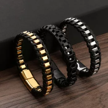 Stylish Hand Woven Stainless Steel & Leather Bracelet for Men