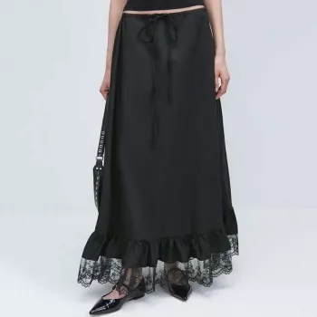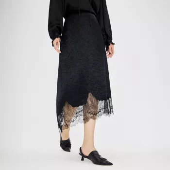 Elegant High Waist Lace Patchwork White Skirt for Women – A-Line Mid-Calf