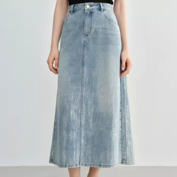 Classic Cotton Denim Skirt for Women – Elegant Mid-Calf Long Skirt