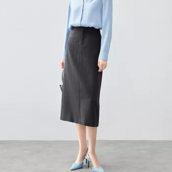 Elegant Striped High-Waist Long Skirt for Women – Stylish Office Wear