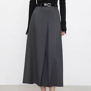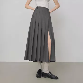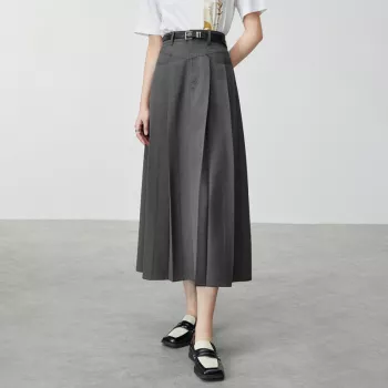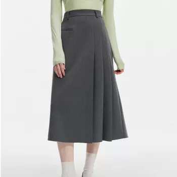 Gray Pleated A-Line Long Skirt for Women – Retro Office Chic Style