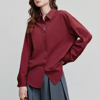 Women’s Long Sleeve Cotton Shirt with Dog Embroidery – Autumn Office Casual