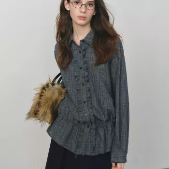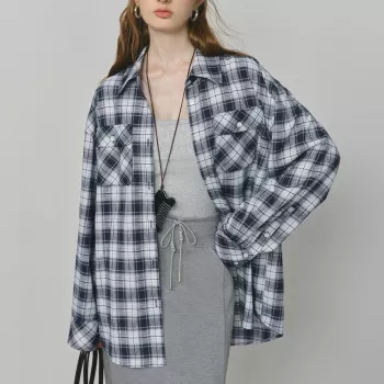 American Retro Plaid Button-Up Shirt with Turn-Down Collar