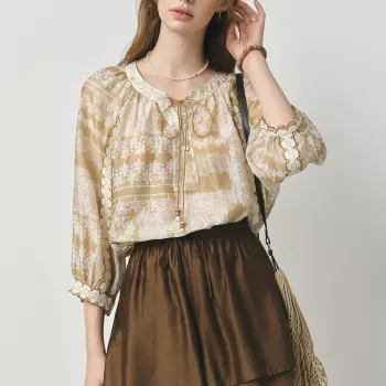 Vintage Embroidered Lace Trim Blouse – Casual Seaside Pullover for Women