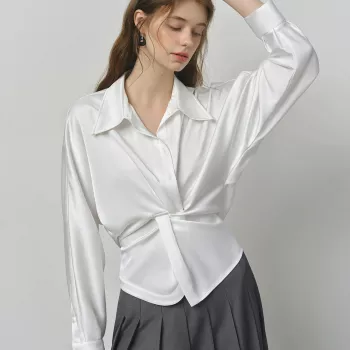 French Minimalist V-Neck Long Sleeve Twist Shirt – Casual Loose Fit